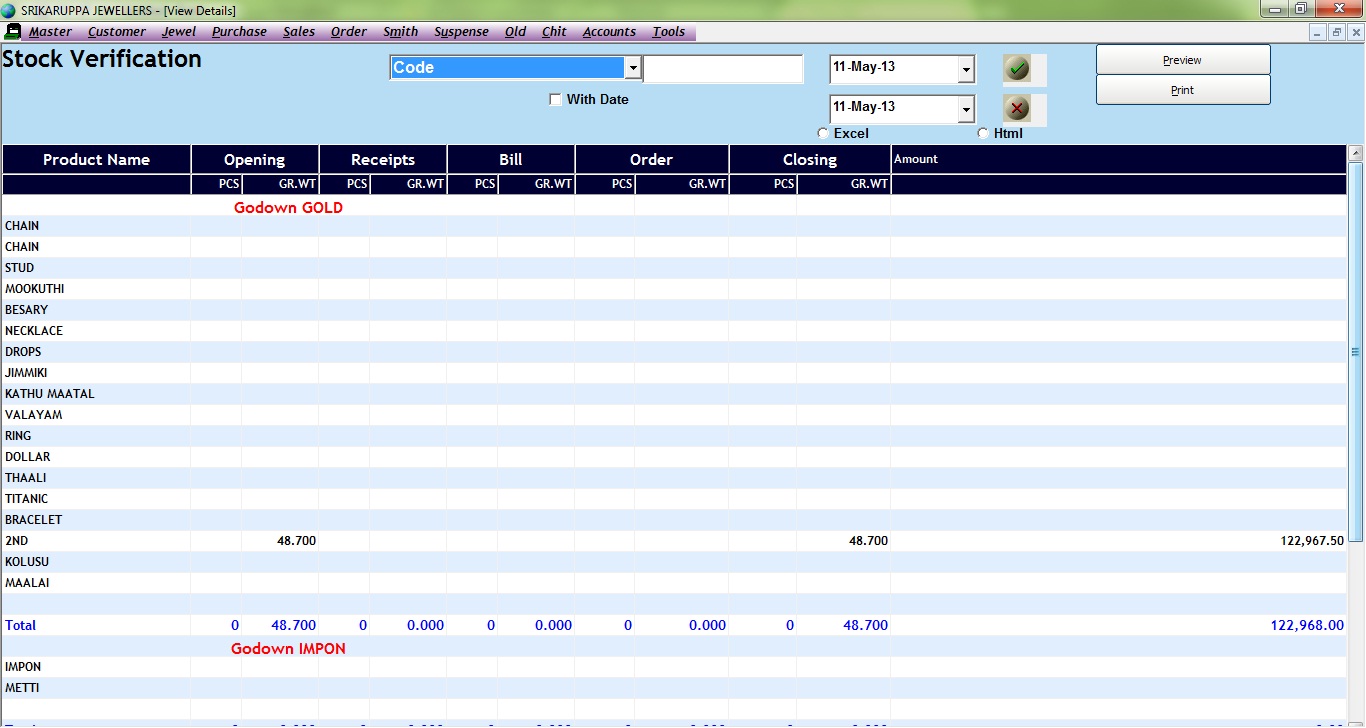 - Tag wise Stock